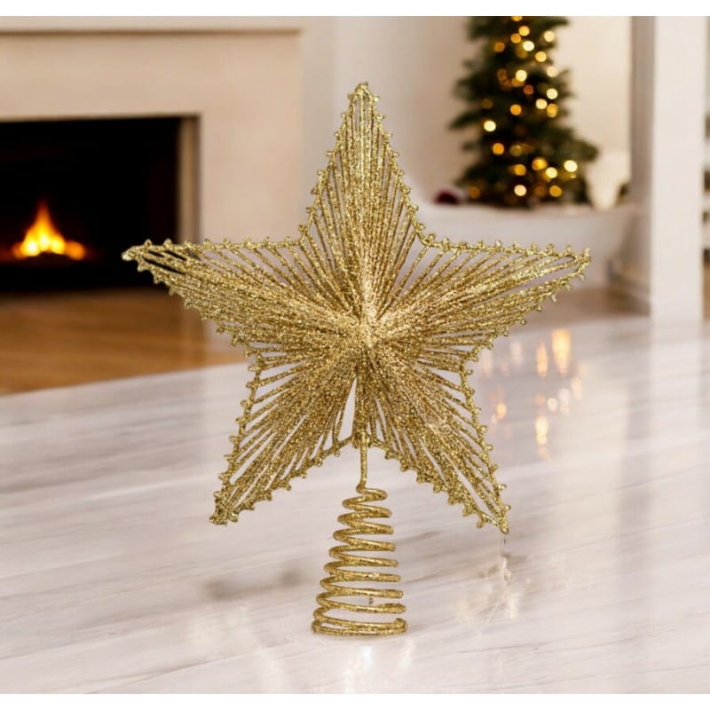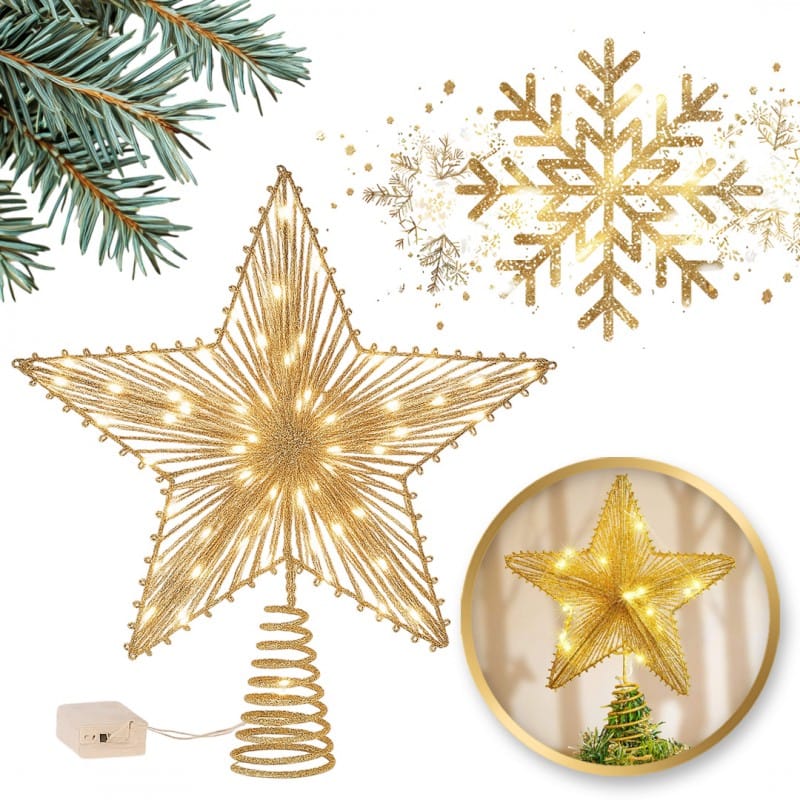 Czubek na choinkę XXL 30cm BOŻE NARODZENIE WOZ12Spraw, aby twoja choinka lśniła dzięki stylowej gwieździe świątecznej.Gwiazda pasuje do większości wnętrz i jest również łatwa do połączenia z różnymi rodzajami dekoracji i ozdób świątecznych! Wymiary:30 x 25 cm Waga:160g Materiał: Metal Gwiazda sprzedawana bez zestawu baterii