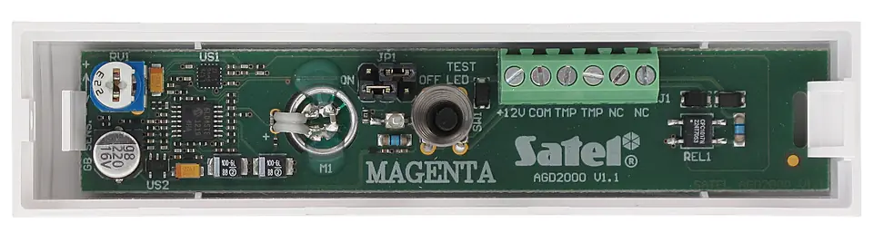 Zarejestrowanie przez mikrofon odgłosu fali uderzeniowej jest sygnalizowane błyśnięciem diody LEDAnaliza kanału wysokiej częstotliwości trwa 4 sekundyJeśli w tym czasie pojawi się dźwięk wysokiej częstotliwości, czyli odgłos tłuczonego szkła, czujnik wywoła alarm