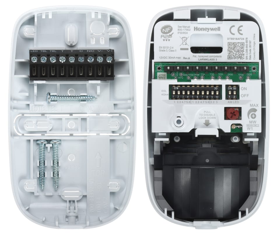 DT8016AF24 to czujka ruchu marki Honeywell wykorzystująca technologię Dual Tec (PIR + mikrofala 24 GHz), przeznaczona do obiektów o podwyższonych wymaganiach bezpieczeństwa. Oferuje zasięg detekcji 16 x 22 m, funkcję antymaskingu oraz zaawansowaną analizę sygnału ograniczającą ryzyko fałszywych alarmów. Wbudowane rezystory EOL i szybki montaż ułatwiają integrację z profesjonalnymi systemami alarmowymi.