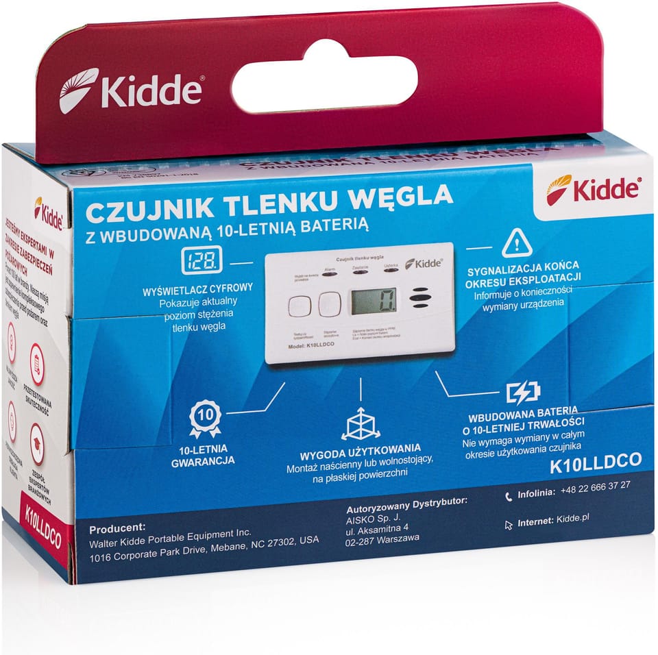 Czujnik czadu z wyświetlaczem Kidde K10LLDCO