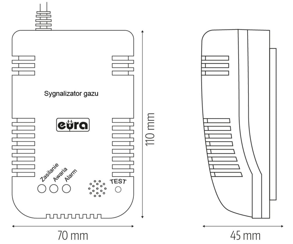 - Min. wykrywane stężenie gazu Typ czujnika gazu półprzewodnikowy Zasięg detekcji czujnika ok. 20-25 m² Wyświetlacz LCD Nie Przycisk testu Tak Sygnalizacja niskiego stanu baterii (lub braku zasilania) Nie Sygnalizacja awarii Tak Termometr Nie Wyjście przekaźnikowe Brak Temperaturowy zakres pracy czujnika +2ºC ~ +50ºC Wymiary czujnika (W x SZ x G) 110 x 70 x 45 mm