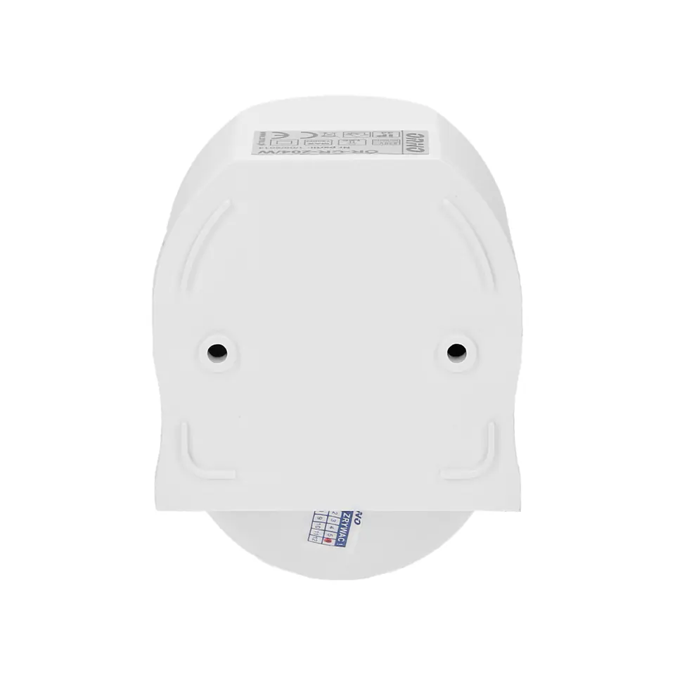 Czujnik służy do automatycznego sterowania oświetleniem lub innymi urządzeniami elektrycznymi. Potencjometry do regulacji: czasu świecenia i czułości natężenia światła. Mechaniczna regulacja pionowa i pozioma. Dostępne kolory: biały, czarny. Czujnik współpracuje z oświetleniem LED-owym.