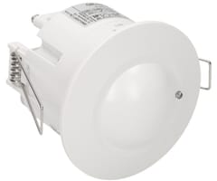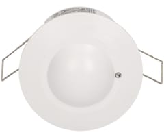 Mikrofalowy (radarowy) czujnik ruchu przystosowany do montażu w sufitach podwieszanych, jest aktywnym detektorem ruchu, który wysyła fale elektromagnetyczne wysokiej częstotliwości (5,8GHz) i odbiera ich echo. Czujnik wykrywa zmiany w echu, wywołane nawet najmniejszym poruszeniem w obserwowanym obszarze. Niewielka emisja mocy (<0,2mW), potencjometry do regulacji: czasu świecenia, zasięgu wykrywania ruchu i czułości natężenia światła. Detekcja ruchu przez szkło, tworzywa sztuczne, płyty kartonowo-gipsowe, brak wpływu temperatury na detekcję. Czujnik współpracuje z oświetleniem LED-owym.