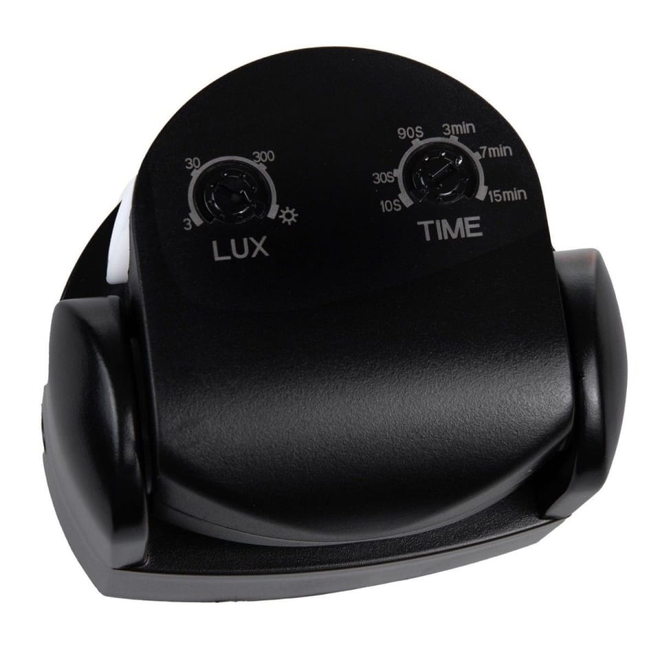 Urządzenie może działać zarówno w nocy jak i w dzień. Pokrętło TIME służy do regulacji czasu oświetlenia (od około 10 sek do 15 minut). Pokrętłem LUX ustawiamy czułość światła otoczenia (zakres od 3 do 2000 LUX). Gdy światło otoczenia jest niewystarczające i chcemy, aby urządzenie pracowało zarówno w dzień jak i w nocy ustawiamy pokrętło w pozycji dzień (ikona słońca).