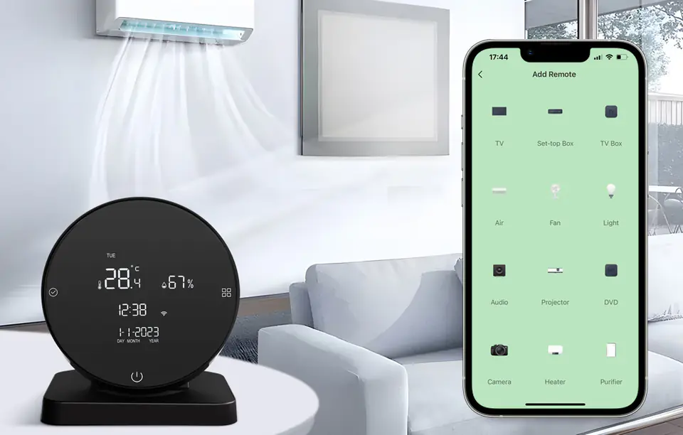 Odkryj inteligentny sposób na monitorowanie temperatury i wilgotności w Twoim domu z Avatto WHS20S! Czujnik zapewnia wysoką dokładność pomiarów, dzięki czemu zawsze będziesz na bieżąco z warunkami w Twoim otoczeniu. Dzięki aplikacji Smart Life/Tuya zyskasz możliwość zdalnego monitorowania parametrów oraz tworzenia scenariuszy, a kompatybilność z asystentami głosowymi jeszcze bardziej ułatwi obsługę. Rozszerzona biblioteka kodów podczerwieni sprawia, że czujnik może obsługiwać ponad 5000 różnych urządzeń IR, w tym telewizory, klimatyzatory, dekodery, wentylatory i oświetlenie. Urządzenie oferuje również przydatne funkcje takie jak budzik, stoper, odliczanie, co czyni go bardziej wszechstronnym narzędziem w codziennym życiu.