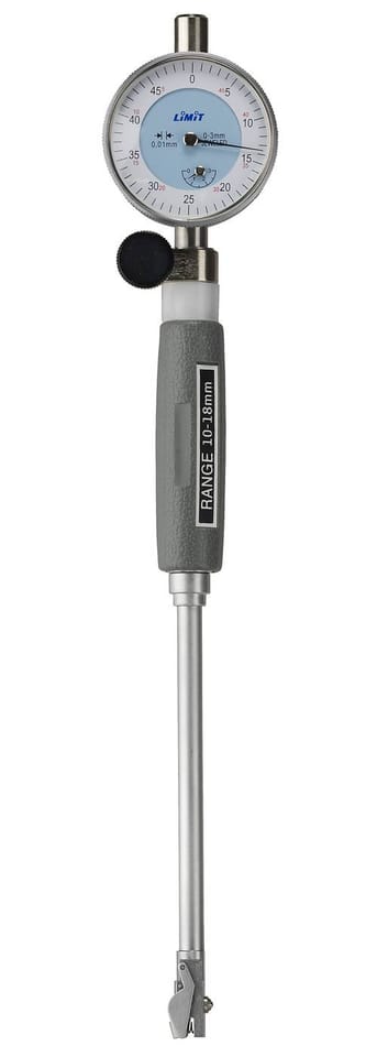 Do precyzyjnych pomiarów średnic wewnętrznych i szczelin. Wyposażony w wymienne trzpienie pomiarowe i podkładki dystansowe o różnych rozmiarach. Sprężynujący mechanizm końcówki zapewnia samoczynne centrowanie, a wierzchołek pomiarowy ma pokrycie z węglików spiekanych. W komplecie z czujnikiem zegarowym. Dokładność ± 15 µm plus dokładność czujnika zegarowego wg DIN 878. Umożliwia pomiar otworów nieprzelotowych przy dnie.