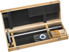 Do precyzyjnych pomiarów średnic wewnętrznych i szczelin. Wyposażony w wymienne trzpienie pomiarowe i podkładki dystansowe o różnych rozmiarach. Sprężynujący mechanizm końcówki zapewnia samoczynne centrowanie, a wierzchołek pomiarowy ma pokrycie z węglików spiekanych. W komplecie z czujnikiem zegarowym. Dokładność ± 15 µm plus dokładność czujnika zegarowego wg DIN 878. Umożliwia pomiar otworów nieprzelotowych przy dnie.