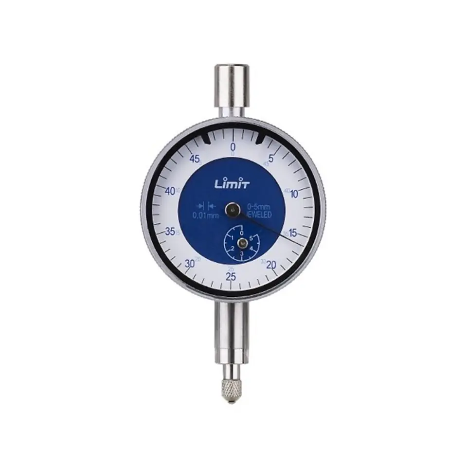 Tarcza podziałki obracana. Dodatkowa wskazówka dla pełnych mm. Wymienialna końcówka pomiarowa. Bez ucha mocującego. Tolerancja wg DIN 878