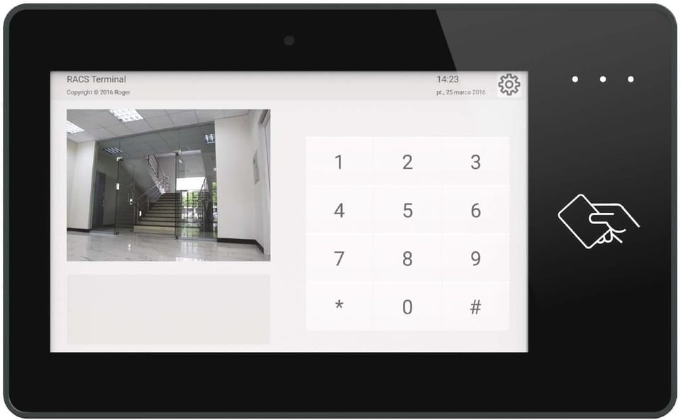 Terminal umożliwia rozpoznawanie użytkownika na podstawie kodu PIN, karty zbliżeniowej 13.56 MHz S50, NFC lub kodu QRPonadto wbudowana kamera umożliwia rejestrację zdjęć logujących się osób oraz transmisję obrazu kamery bezpośrednio do komputera zarządzającego systemem