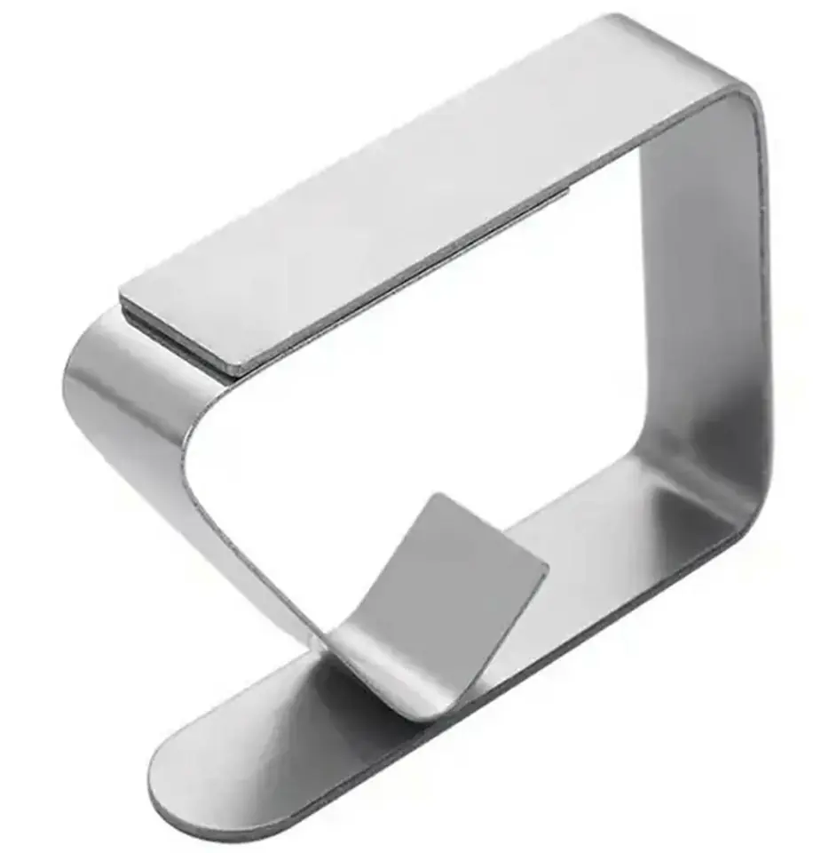 Zestaw 6 klipsów do mocowania obrusu na stole. Wykonane z solidnej stali nierdzewnej, która zapewni długie i bezproblemowe użytkowanie. Doskonale sprawdzą się podczas wszelkich przyjęć, aby zapobiec zsuwaniu się nakrycia stołu.W komplecie 6 klipsów do obrusu!