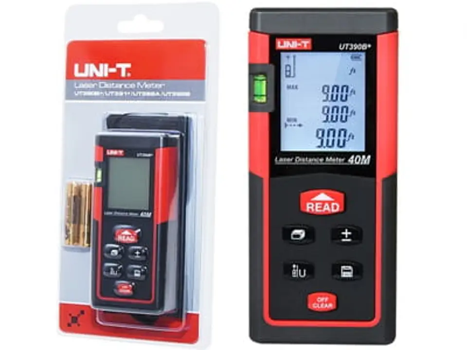 Przedstawiciel rodziny Uni-T dalmierz UT390B+ mierzy do odległości 40 metrów, jego dokładność to 1.5mm+d*5/100000. Pomiar można odczytać w trzech jednostkach; metry, stopy albo cale. Na jednej zmianie baterii zrobimy na tym dalmierzu aż 8000 pomiarów.