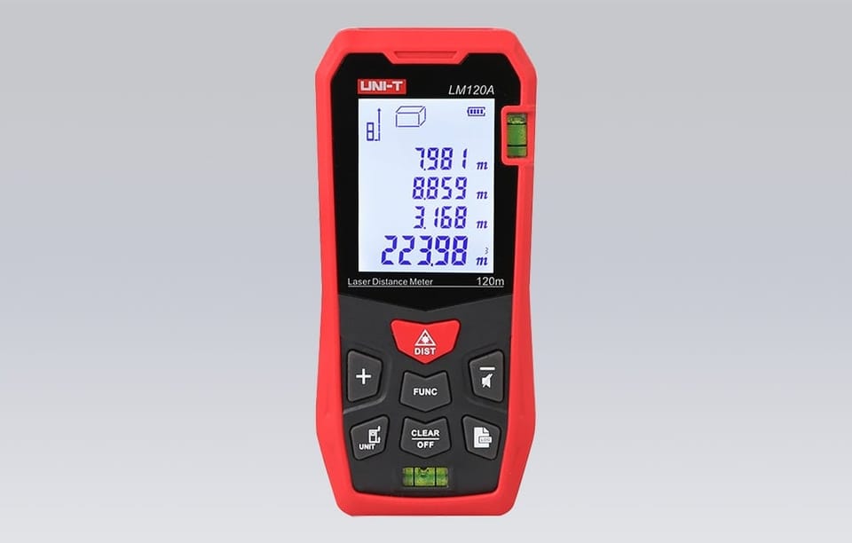 Urządzenie LM-120A to laserowy miernik odległości o zasięgu do 120 m