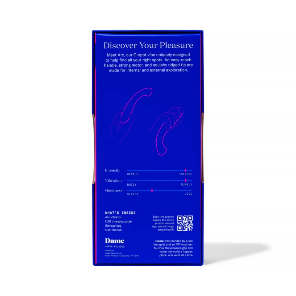 Dame Products Arc Berry to zaawansowany model do precyzyjnej, wielokierunkowej stymulacji, zaprojektowany z dbałością o najwyższy komfort użytkowania. Wyrożnia się ergonomicznym, zakrzywionym uchwytem, ktory ułatwia dopasowanie pozycji oraz pewny chwyt nawet podczas dłuższego użytkowania. Miękka, elastyczna końcowka pozwala na precyzyjne skierowanie wibracji według indywidualnych preferencji.