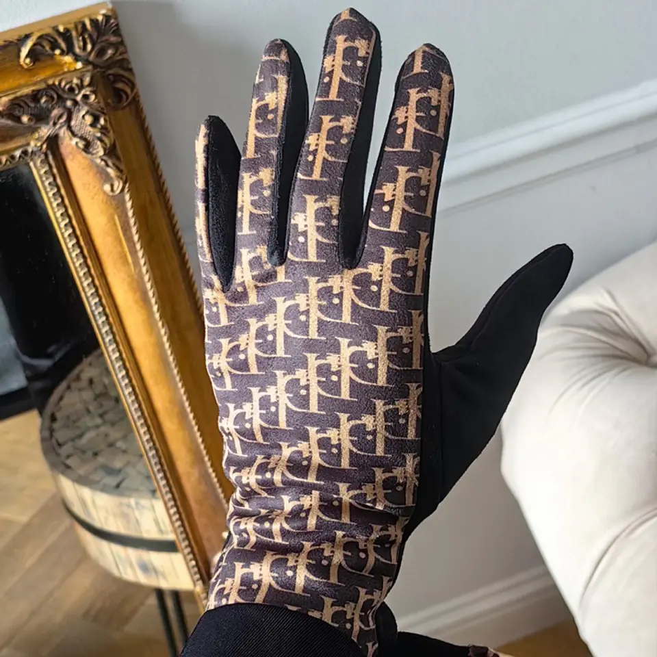 Damskie rękawiczki elegancki nadruk Elegant ciepłe z polarkiem w środku REK143WZ1