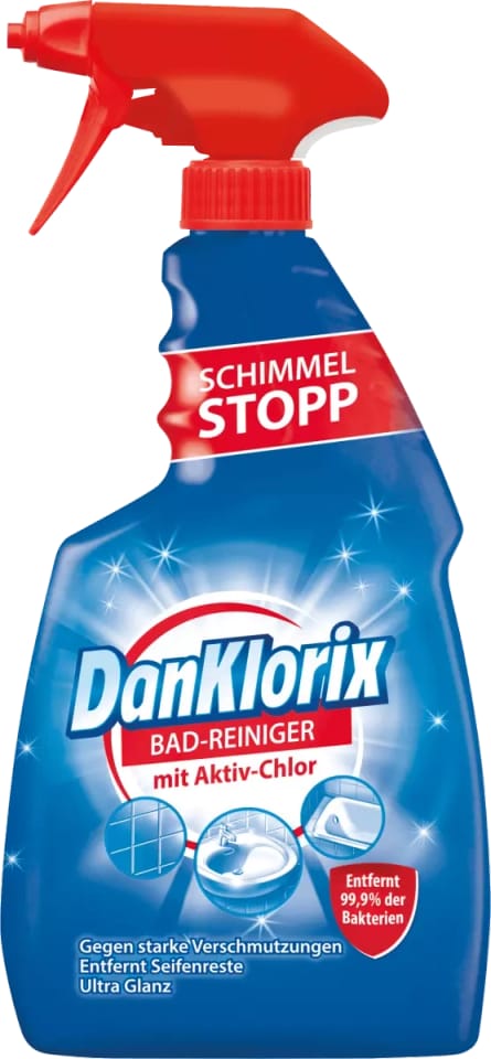 Usuwanie pleśni i plam pleśniowych, np. z zasłon prysznicowych, płytek, spoin i muru: Do usuwania pleśni i plam pleśniowych, np. z zasłon prysznicowych, płytek, spoin i muru. W razie potrzeby zwilżyć powierzchnie. Spryskać, pozostawić na 15 minut i spłukać wodą. Powtórz proces w przypadku uporczywych plam. W przypadku stosowania na delikatnych tekstyliach, np. markizach i parasolach, należy wcześniej przeprowadzić próbę na niewidocznym miejscu. Higieniczne czyszczenie i dezynfekcja: spryskać bezpośrednio powierzchnię, pozostawić na 15 minut, zetrzeć i w razie potrzeby spłukać wodą, gotowe. Nie stosować do elementów srebrnych, aluminiowych i ze stali innej niż nierdzewna. Unikać kontaktu z odzieżą (efekt wybielający). W razie wątpliwości wypróbuj w mało widocznym miejscu.
