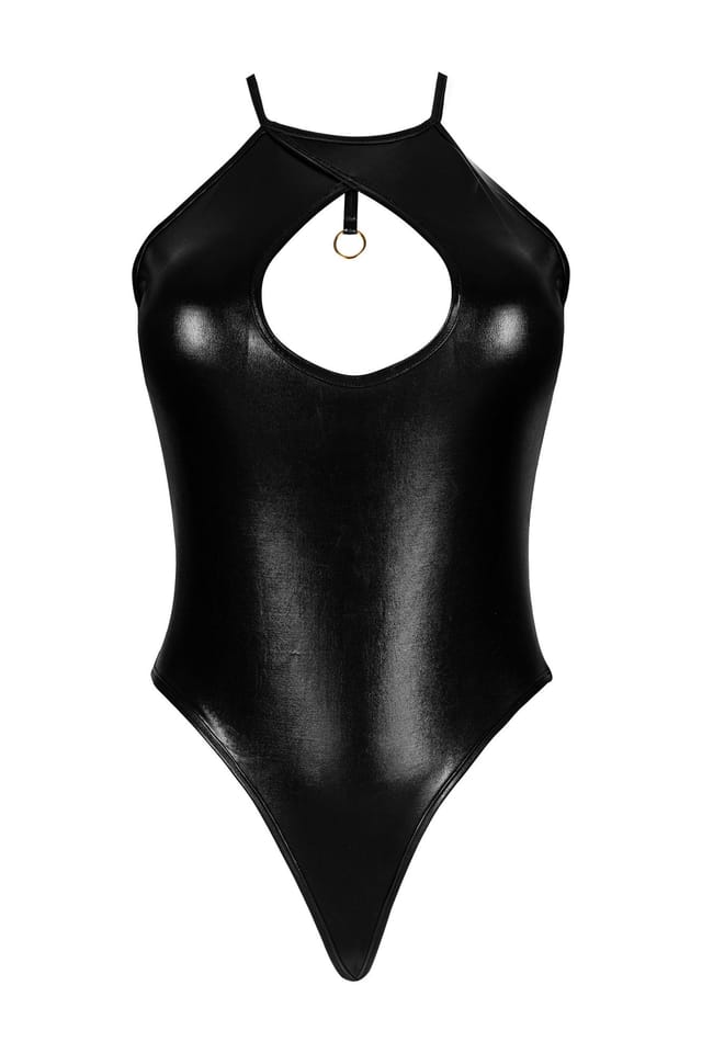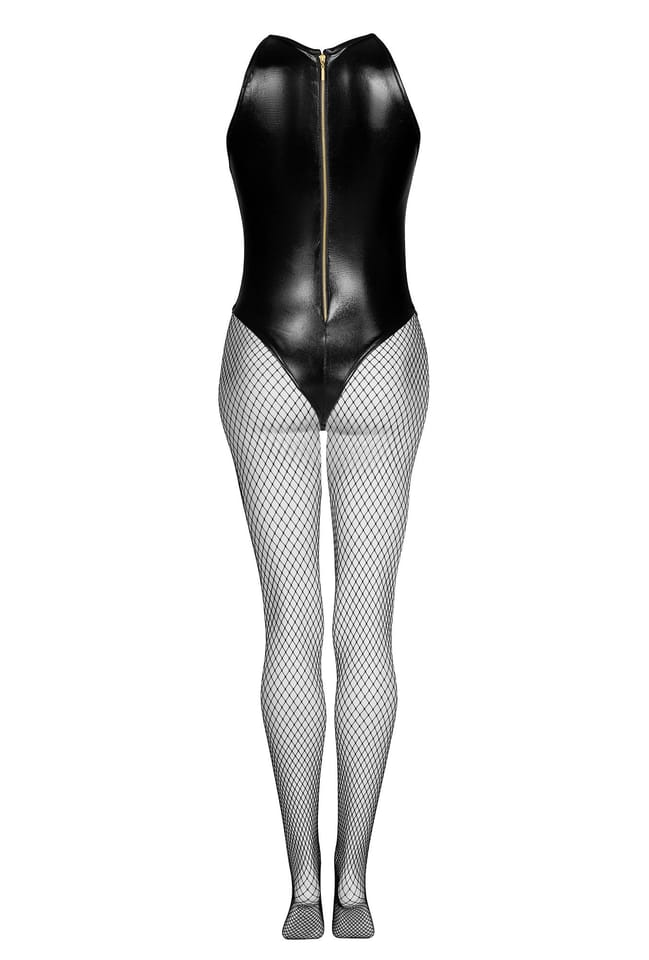 Dark Magnet set black to komplet dla kobiet, które cenią odważny i nowoczesny styl. Body wykonane z połyskującego wetlooku pięknie modeluje sylwetkę, a zmysłowe wycięcie z przodu przyciąga spojrzenia. Suwak z tyłu jest zarówno praktyczny, jak i niezwykle efektowny, podkreślając charakter całego modelu. Dopełnieniem całości są kabaretki, które dodają pazura i podkreślają nogi.