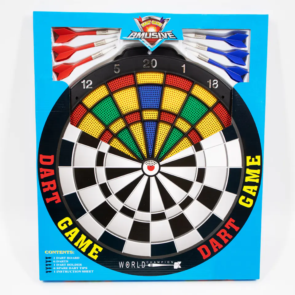 Dart Bezpieczny zawiera 6 specjalnie zaprojektowanych rzutek - 3 czerwone i 3 niebieskie. Dzięki różnym kolorom dzieci mogą rywalizować ze sobą lub wspólnie bawić się w różnorodne gry, rozwijając przy tym swoje umiejętności motoryczne i koncentrację.
