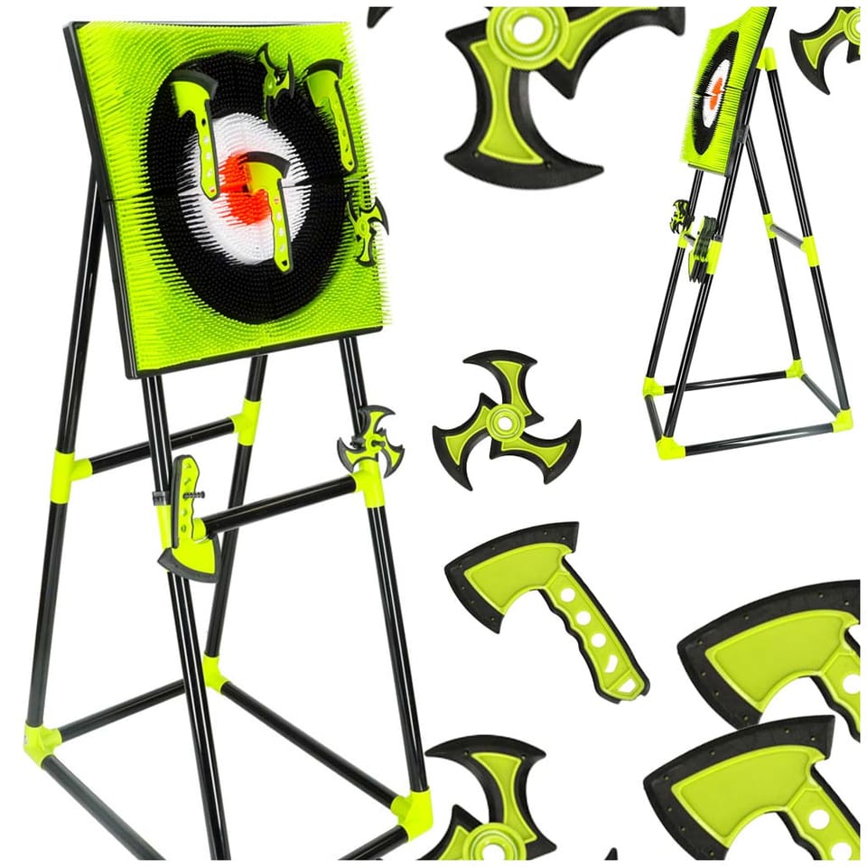 Plastikowe toporki i shuriken’y są obtoczone miękkim silikonem, dzięki czemu rzucanie nimi jest całkowicie bezpieczne. Każdy z akcesoriów jest starannie wykonany, by zapewnić autentyczny wygląd i ekscytującą zabawę. Stabilny, plastikowy stojak z uchwytami umożliwia łatwe przechowywanie akcesoriów i szybkie przygotowanie zestawu do kolejnej sesji treningowej. Dzięki temu Twoje dziecko może doskonalić swoje umiejętności w każdej chwili.