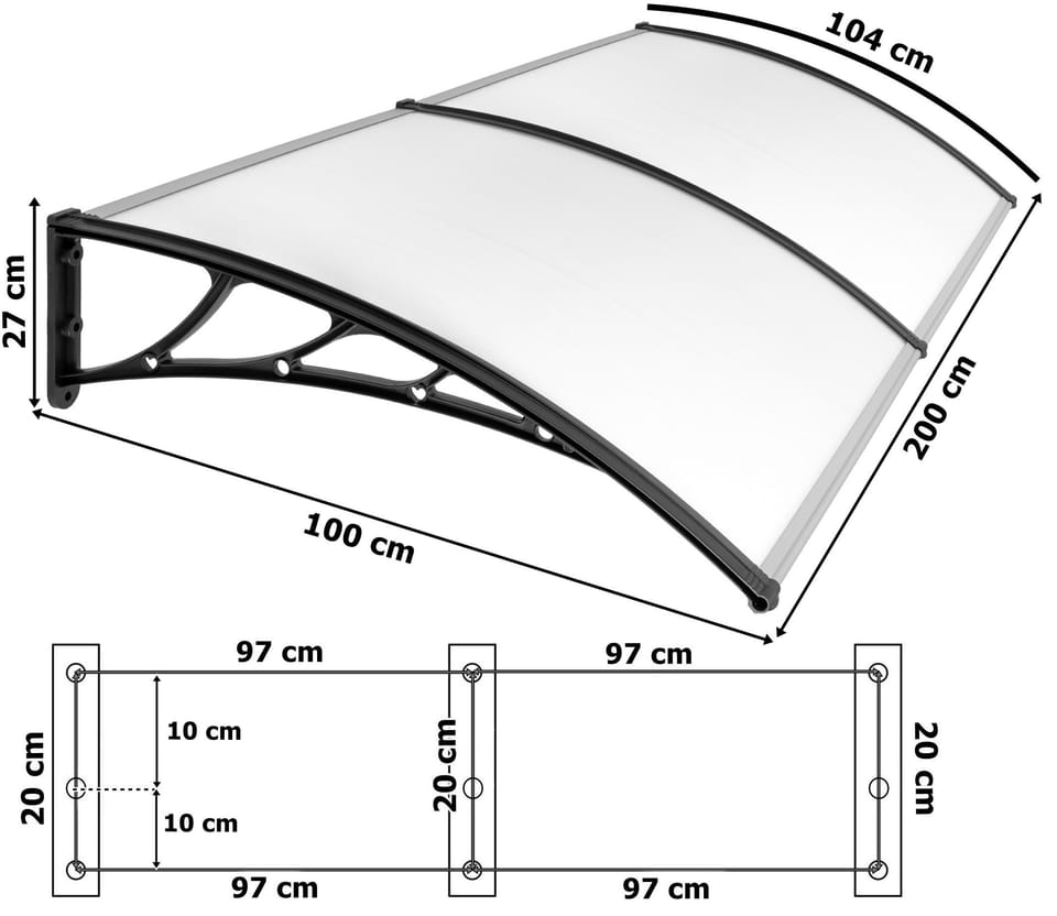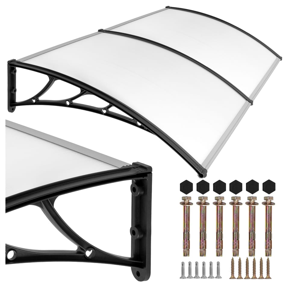 Daszek nad drzwi MAKO DUO 100x200cm czarny⭐️ Skuteczna ochrona drzwi przed warunkami atmosferycznymi⭐️ Odporny na promieniowanie UV⭐️ Mocna i stabilna konstrukcja⭐️ Samodzielna instalacja⭐️ Nie wymaga konserwacji⭐️ Zakup od producenta☔️Daszek plastikowy nad drzwi Mako Duo 100x200 – Praktyczna osłona do domu i biura☔️Zyskaj ochronę i styl w jednym – daszek nad drzwi Mako Duo 100x200 cm czarny to skuteczna osłona przed deszczem, śniegiem i słońcem, która zabezpiecza drzwi i osoby wchodzące do domu. Montujesz go samodzielnie, bez potrzeby wynajmowania fachowca. Solidna konstrukcja z filtrem UV to gwarancja trwałości i estetyki na lata.Cechy:Materiał pokrycia: Poliwęglan komorowy, przezroczystyKolor konstrukcji: CzarnyMocowania: Tworzywo sztuczne + aluminiumGrubość płyty: 5,2 mmFiltr UV: TakTyp montażu: Ścienny, samodzielnyModułowy system łączenia - można uzyskać dowolną długość zadaszeniaW zestawie: Wkręty, kotwy, zaślepki, instrukcja Wymiary produktu:Długość: 100 cmSzerokość: 200 cmWysokość: 27 cmGłębokość: 104 cm Informacje dodatkowePrzedstawione kolory należy traktować poglądowo - mogą odbiegać od rzeczywistych ze względu na różne ustawienia monitorów oraz proces obróbki zdjęć. Rzeczywiste wymiary mogą się różnić od podanych wyżej. Tolerancja błędów może wynosić +/- 5%. Marka:GockowiakKod produktu:5902340314104Kod EAN:5902340314104Kolor:czarnySzerokość: 200 cmDługość:100 cmGrubość płyty:5,2 mmMateriał:poliwęglan, metal, plastik