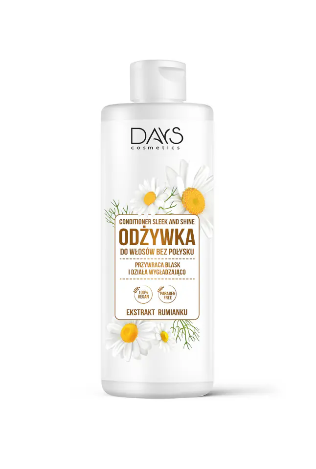 Odżywka z zawartością ekstraktu z rumianku dzięki której włosy staną się bardziej nawilżone, odzyskają swój blask i sprawią wrażenie wygładzonych i lśniących. Produkt bez parabenów, na wegańskiej formule. Uzupełnienie kompleksowej pielęgnacji włosów.