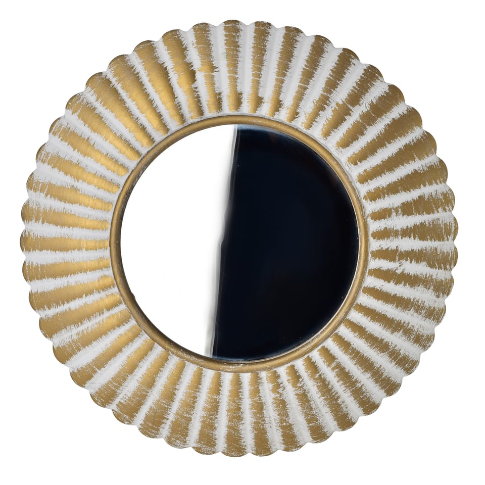 DAZ. Lustro dekoracyjne okrągłe 40 40 3 cm, biało-złoteStylowe lustro dekoracyjne z kolekcji DAZ marki MONDEX since 1986. Okrągła rama w kolorze biało-złotym z delikatnym efektem przetarcia nadaje całości wyjątkowego charakteru i elegancji.Lustro ma wypukłą budowę, a średnica samej powierzchni odbijającej światło to 21 cm. Doskonale sprawdzi się w każdym wnętrzu . zarówno nowoczesnym, jak i klasycznym. Dodając mu blasku, głębi i stylowego akcentu.