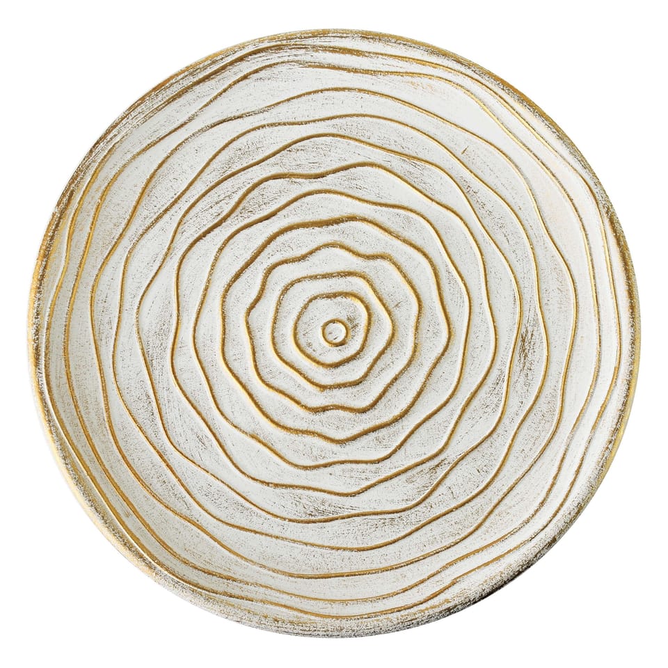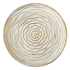 DAZ Taca dekoracyjna okrągła 29 29 3,5 cm, biała ze złotym przetarciemStylowa taca dekoracyjna z kolekcji DAZ marki MONDEX . since 1986.Wykonana z wysokiej jakości MDF-u w kolorze białym ze złotym przetarciem, które nadaje jej subtelnego, eleganckiego charakteru.Powierzchnia tacy ozdobiona jest tłoczeniem w nieregularne linie, co tworzy ciekawy, nietypowy efekt wizualny.Doskonale sprawdzi się jako element dekoracyjny stołu, komody lub toaletki, idealna do ekspozycji świec, ozdób lub biżuterii. Nie nadaje się do kontaktu z żywnością.