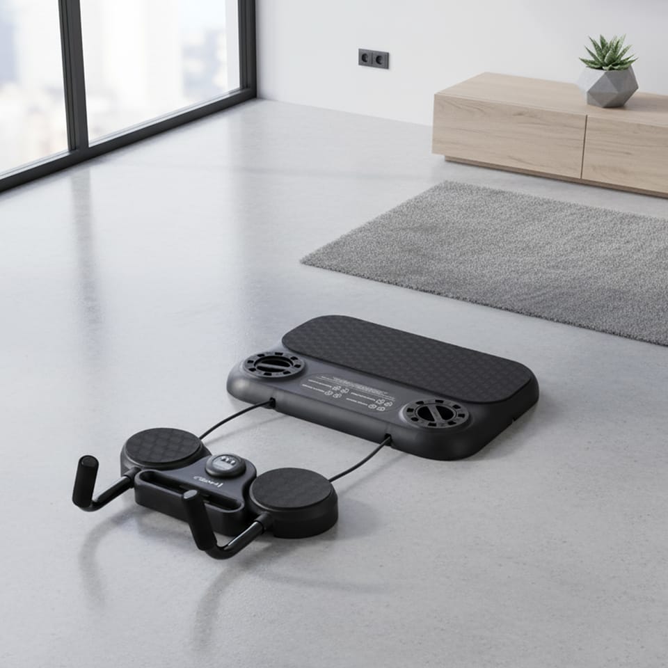 DBP01 WIELOFUNKCYJNA DESKA DO ĆWICZEŃ Z LINKAMI HMSJedna platforma, dziesiątki ćwiczeń. DBP01 łączy deskę do planku, system pompek z różnymi chwytami oraz elastyczne linki oporowe – wszystko po to, by w domowej siłowni skutecznie wzmacniać klatkę, barki, ramiona, core i plecy. Wbudowany wyświetlacz liczy czas, a uchwyt na telefon pomaga trenować z ulubioną aplikacją.Najważniejsze korzyści Plank i pompki w wielu wariantach – ergonomiczne, przekładane uchwyty pozwalają ustawić różny rozstaw i kąt chwytu, by lepiej izolować wybrane grupy mięśni. Trening całego ciała z linkami – w zestawie ekspandery (linki oporowe) do ćwiczeń na biceps, triceps, barki i plecy; idealne do rozgrzewki i urozmaicenia planu. Kontrola czasu na wyświetlaczu – zlicza czas serii i planku, ułatwiając progres. Komfort i bezpieczeństwo – liczne antypoślizgowe podkładki od spodu zwiększają przyczepność i chronią podłogę przed zarysowaniem; górna powierzchnia zapewnia stabilny chwyt. Uchwyt / półka na telefon – wygodne miejsce na smartfon do podglądu treningu. Kompaktowa i przenośna – łatwo ją przechowywać i zabrać ze sobą. Funkcje i rozwiązania System pompek: ruchome, wyprofilowane uchwyty z możliwością ustawienia różnych pozycji chwytu (wąski, klasyczny, szeroki, neutralny) – lepsza aktywacja klatki piersiowej, tricepsów i barków. Deska do planku: stabilna płyta bazowa pozwala utrzymać prawidłową pozycję ciała, a timer motywuje do dłuższych serii. Linki oporowe: elastyczne, wytrzymałe, z ergonomicznymi rączkami – wszechstronne ćwiczenia góry i dołu ciała (m.in. przysiady z oporem, wiosłowanie, uginania). Ochrona podłogi: okrągłe piankowe podkładki i antypoślizgowe stopki zapobiegają przesuwaniu i ocieraniu powierzchni. Stabilna platforma: solidna konstrukcja zapewnia pewny trening w domu lub podczas wyjazdu. Dla kogo? Dla osób, które chcą zbudować siłę i wytrzymałość bez rozbudowanego sprzętu. Dla początkujących i średnio zaawansowanych, jako kompletna baza do ćwiczeń w domu. Dla fanów planku, pompek i ćwiczeń z ekspanderami, którzy potrzebują praktycznego, wielofunkcyjnego rozwiązania. Bezpieczeństwo i komfort użytkowania Antypoślizgowe stopki i piankowe podkładki ? brak przesuwania i ochrona podłoża. Ergonomiczne uchwyty o przyjemnej w dotyku fakturze ? pewny chwyt nawet przy spoconych dłoniach. Czytelny licznik czasu ? bezpieczny progres i kontrola obciążenia. Zestaw zawiera Deska treningowa DBP01 HMS – 2 elementy (moduł bazowy + moduł z timerem i uchwytem na telefon). 2 uchwyty do pompek (przekładane). 2 linki oporowe z rączkami Instrukcję obsługi Specyfikacja: Moduł bazowy: Długość: 56 cm Szerokość: 40 cm Piankowe podkładki: 21,5 x 52 cm Moduł z czasomierzem: Długość: 30 cm (wraz z poręczami) Szerokość: 40 cm Piankowe podkładki: średnica 12 cm Długość ekspanderów: 70–140 cm Odległość między uchwytami do pompek (w pozycji środkowej): 38 cm Wysokość uchwytu do pompek: 16 cm Średnica uchwytów Deska: 3 cm Pompki: 2,9 cm Uchwyt na telefon: tak Licznik: czas (precyzja co do sekundy) Różne warianty chwytu: tak Materiał: PP + EVA + stal Maksymalna waga użytkownika: 150 kg Waga: ok. 3.2 kg Uwagi: Nie przeznaczona do użytku komercyjnego Gwarancja 24 miesiące Importer: Abisal Sp. z o.o.| Polska | 41-807 Zabrze | ul. Pyskowicka 17 | e-mail: abisal@abisal.plAbisal Sp. z o.o. deklaruje, iż produkty sprzedawane przez firmę są bezpieczne i spełniają wymagania zawarte w Ustawie o ogólnym bezpieczeństwie produktów z dnia 12 grudnia 2003r. (Dz.U. z dnia 31 grudnia 2003r.)