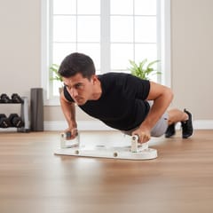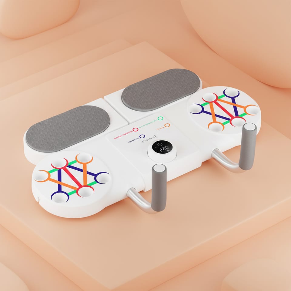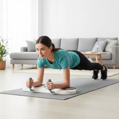 DBP03 WIELOFUNKCYJNA DESKA DO ĆWICZEŃ MIĘŚNI BRZUCHA I POMPEK Z LICZNIKIEM HMS Jeden, kompaktowy przyrząd do skutecznego treningu w domu. DBP03 łączy stabilną deskę do planku, uchwyty do pompek z wieloma ustawieniami oraz inteligentny licznik z optycznym (IR) czujnikiem zbliżeniowym, który automatycznie zlicza powtórzenia. Najważniejsze korzyści Smart licznik powtórzeń – optyczny (IR) czujnik zbliżeniowy wykrywa każde zejście w dół i automatycznie liczy powtórzenia; wyświetlacz pokazuje wynik serii. Różne opcje chwytu – system otworów i kolorowe prowadzenie ułatwiają ustawienie rączek pod konkretne partie: klatka, barki, tricepsy, mięśnie grzbietu. Trening core – szeroka płyta z piankowymi podkładkami stabilizuje plank i ćwiczenia brzucha. Komfort i bezpieczeństwo – antypoślizgowa faktura, piankowe rękojeści i sztywna podstawa. Porządek – smukły profil do łatwego przechowywania. 3w1 – jak to działa? Pompki – wpinasz uchwyty w różne otwory: pod różnym kątem, by akcentować klatkę, barki lub tricepsy. Plank i brzuch – stabilne oparcie dla dłoni/łokci umożliwia plank statyczny i izometrie. Liczenie i kontrola – uruchamiasz licznik, a DBP03 zlicza ruchy – idealne do progresji. Komfort i bezpieczeństwo Grube, amortyzujące podkładki dla wygodnego kontaktu ze skórą. Antypoślizgowa baza w wielu punktach podparcia – deska nie „wędruje” po podłodze. Ergonomiczne, miękkie uchwyty – pewny chwyt nawet przy dłuższych seriach. Dla kogo? Dla osób początkujących i średniozaawansowanych, które chcą wzmocnić core, klatkę, barki, tricepsy i plecy, jednocześnie kontrolując liczbę powtórzeń bez liczenia w głowie. Przykładowe ćwiczenia Pompki: wąskie, klasyczne, szerokie; z rotacją uchwytów. Plank: klasyczny, wysoki/nisko na przedramionach, plank z przejściem. Izometryczne utrzymanie pozycji z interwałami czasowymi. Aktywacje grzbietu i barków w podporach (scapular push-up). Specyfikacja: Długość: 37,5 cm Szerokość: 58 cm Piankowe podkładki: 10,5 x 20,5 cm Odległość między uchwytami do pompek (w pozycji środkowej): 43 cm Wysokość uchwytu do pompek: 11,5 cm Średnica uchwytów do pompek i deski: 3 cm Licznik: liczba powtórzeń Różne warianty chwytu: tak Materiał: PP + TPE + stal Maksymalna waga użytkownika: 150 kg Waga: ok. 1.3 kg Uwagi: Nie przeznaczona do użytku komercyjnego Gwarancja 24 miesiące Importer: Abisal Sp. z o.o.| Polska | 41-807 Zabrze | ul. Pyskowicka 17 | e-mail: abisal@abisal.plAbisal Sp. z o.o. deklaruje, iż produkty sprzedawane przez firmę są bezpieczne i spełniają wymagania zawarte w Ustawie o ogólnym bezpieczeństwie produktów z dnia 12 grudnia 2003r. (Dz.U. z dnia 31 grudnia 2003r.)