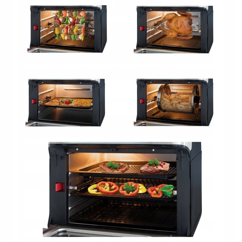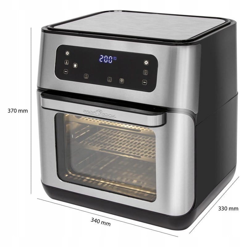 NAJWYŻSZEJ JAKOŚCIFRYTKOWNICA BEZTŁUSZCZOWAMINI PIEKARNIKGRILL ELEKTRYCZNYRENOMOWANEJ FIRMY PROFICOOKMODEL: PC-FR 1200 HTo zaawansowane urządzenie piekarnicze oferuje niezrównaną jakość i wszechstronność w przygotowywaniu potraw. Dzięki różnorodnym funkcjom grzania, takim jak grzałka górna/dolna, termoobieg czy obracanie, masz pełną kontrolę nad procesem pieczenia, co pozwala osiągnąć doskonałe efekty w każdym przypadku.Beztłuszczowa frytkownica, mini piekarnik i grill w jednym. Nie musisz mieć dużej kuchni, aby jeść własnoręcznie zrobione nugettsy, pizzę, zapiekanki, burgery, mięso z rożna - kurczaka, karkówkę, szaszłyki czy kiełbaski. W obrotowym koszyku frytki z ziemniaków, jarmużu, marchwi czy buraków opieką się równo z każdej strony bez grama niezdrowego tłuszczu.Zdrowo i smacznie. Za sprawą gorącego powietrza (max. 200° C) równomiernie wypełniającego wnętrze urządzenia przygotujesz pyszne i chrupiące dania. Produkty upieczone gorącym powietrzem zachowują pełnię wartości odżywczych i witamin.Frytkownicę z powodzeniem wykorzystasz także do suszenia grzybów, owoców, warzyw i ziół, chyba najzdrowszego sposobu przechowywania żywności przez dłuższy czas. Podczas przygotowania nie będzie także nieprzyjemnych oparów i zapachu.Pojemność urządzenia to, aż 11 litrów, w tym samym czasie przygotujesz posiłki dla 2-3 osób. Aby to usprawnić urządzenie posiada 9 automatycznych programów, które wybierzesz z wielofunkcyjnego panelu dotykowego. Timer będzie kontrolował czas, abyś mógł przyjść na koniec pieczenia.Do frytkownicy dołączony jest bogaty zestaw akcesoriów: 8 obrotowych szpilek do szaszłyków, obrotowy koszyk do smażenia, rożen obrotowy, 2 kratki do grilowanych potraw, blacha do pieczenia, która może mieć także funkcję zbierania tłuszczu, a także narzędzie do czyszczenia wykonane ze stali nierdzewnej.Najważniejsze cechy beztłuszczowej frytkownicy ProfiCook PC-HT 1200 H:Wszechstronna frytkownica na gorące powietrze dla diety niskotłuszczowejSmaczne potrawy zawierające do 80% mniej tłuszczu *Niski poziom dymu i zapachuBezstopniowy termostat (do maks. 200° C)Dużo zdrowsze, ponieważ potrawy nie są gotowaneGorące powietrze dostarcza więcej witamin i składników odżywczych *Front i pokrywa ze stali nierdzewnej9 programów automatycznych, w tym zmienny czas i ustawienia temperaturyFunkcja suszenia - nadaje się również do suszenia grzybów, owoców, warzyw, ziół, mięsa i nie tylko. Suszone potrawy są bogate w substancje niezbędne dla dobrego samopoczucia, sprawności i zdrowia.Przygotowanie oszczędzające czas i energięChłodny (Cool Touch) uchwyt dotykowyPojemność: ok. 11 litrów4 wysokości wsuwania dla optymalnego pieczeniaDotykowy wyświetlacz LEDTimer z sygnałem zakończeniaDuże okno podgląduOświetlenie komory można włączyć i wyłączyć zgodnie z preferencjamiOchrona przed przegrzaniem220-240 V, 50/60 Hz, 1500 WSzeroka gama akcesoriów:obrotowy kosz do smażenia, 8 obrotowych szpilek do szaszłyków, rożen obrotowy np. chrupiący grillowany kurczak, 2 wsuwane kratki, aby umożliwić jednoczesne przygotowanie różnych potraw, blacha do pieczenia / tacka na tłuszcz, narzędzie do czyszceniaWYMIARY:Waga ok. 6,8kgWymiary urzadzenia: 34 x 37 x 33 cm ( szer x wys x gł)Wymiary opakowania:38 x 43 x 38 cm ( szer x wys x gł) Produkt został odznaczony certyfikatem FOCUS - TEST DEUTSCHLANDS BESTECertyfikat TEST DEUTSCHLANDS BESTE został przyznany na podstawie badań przeprowadzonych przez „Germanys best household electronics”. W ramach testu porównane zostały produkty z ponad 20 000 marek z 274 segmentów rynkowych.Celem wyróżnienia „Focus” jest wskazywanie produktów cieszących się największym uznaniem konsumentów. Certyfikat przyznany jest na podstawie badań niemieckiego rynku i potwierdza wysoką jakość produktów a także świadczy o dużym zaufaniu konsumentów i renomie marki.