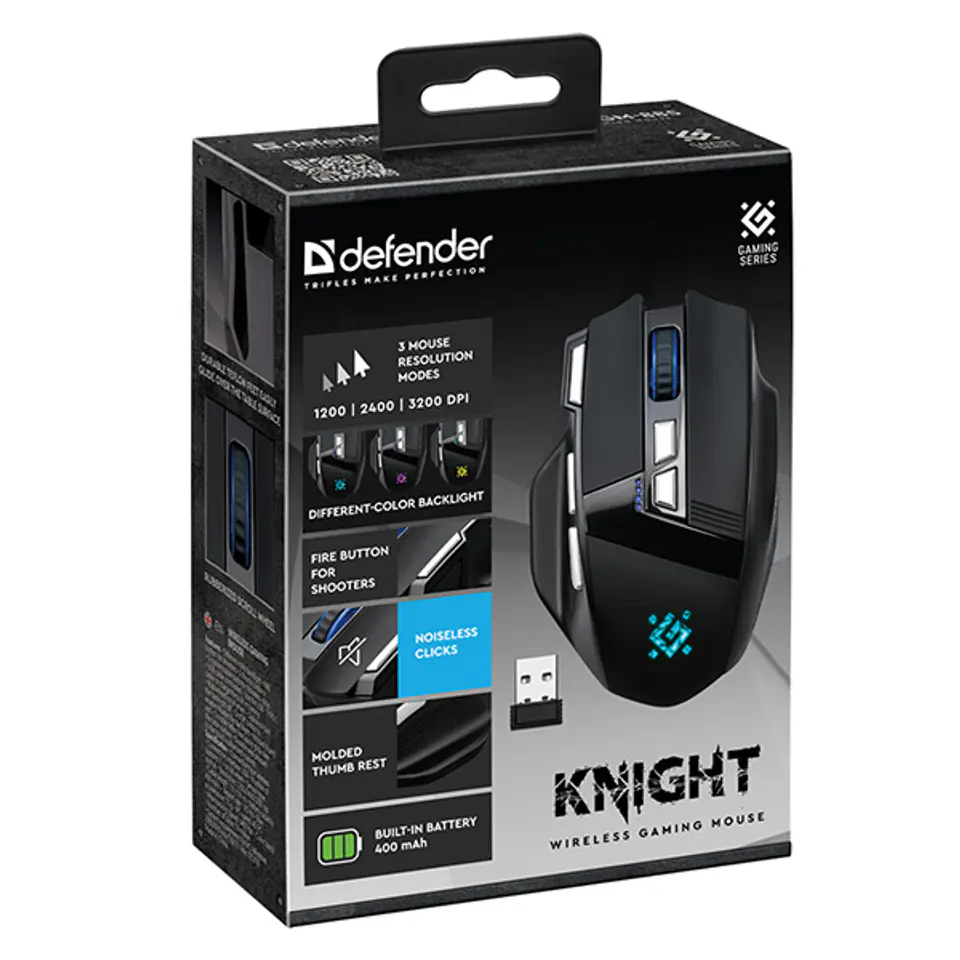 Defender Knight GM-885 to nowoczesna bezprzewodowa mysz gamingowa, zaprojektowana z myślą o wymagających graczach. Dzięki tęczowemu podświetleniu, wysokiej precyzji działania oraz ergonomicznemu designowi, mysz zapewnia wyjątkowy komfort i funkcjonalność podczas długich sesji gamingowych. Z wbudowanym akumulatorem ładowanym przez złącze USB Type-C oraz oprogramowaniem Defender Game Center, GM-885 jest doskonałym wyborem dla entuzjastów gamingu.