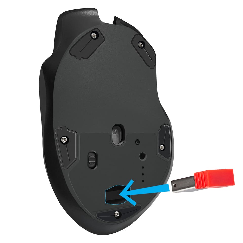 - Przechowywanie odbiornika USB: Wbudowany slot na odbiornik eliminuje ryzyko jego zgubienia.