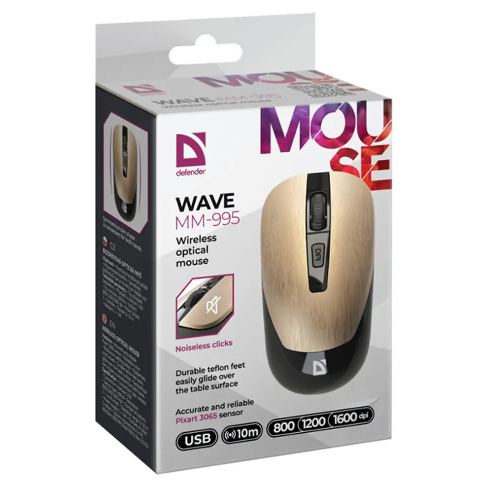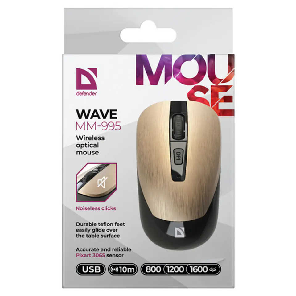 Defender WAVE MM-995 Mysz bezprzewodowa, złota, 1600DPI