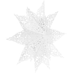 DEKORACJA PAPIEROWA PŁATEK ŚNIEGU ŚR. 64 CM BIAŁY DELUXE to piękny i efektowny element ozdobny, idealny na zimowe i świąteczne dekoracje! Papierowa konstrukcja sprawia, że jest lekka i łatwa do zawieszenia. Dzięki swoim rozmiarom, taki płatek śniegu może stać się centralnym punktem dekoracji, wprowadzając zimową atmosferę do każdego pomieszczenia.