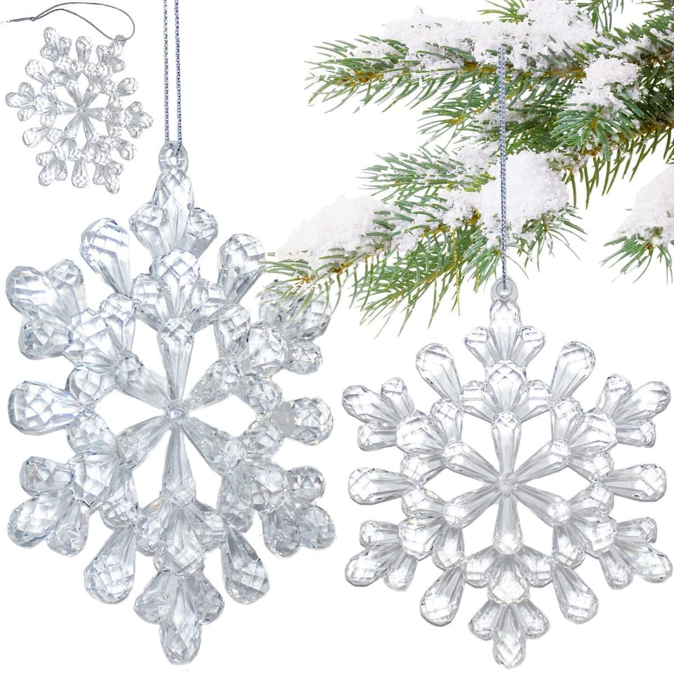 • przeźroczysty akryl imituje lód i śniegw uniwersalnym rozmiarze – idealny na choinkę, okno lub girlandęlekka konstrukcja, łatwa do powieszenia na cienkich gałązkach i haczykachelegancka zimowa dekoracja, sprawdzi się w domu, biurze, restauracjiwykonanay z trwałego i odpornego materiału-akrylu
