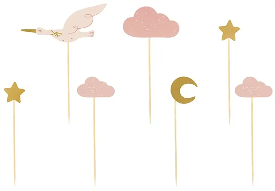Dekoracje do muffinek - Bocian, mix wzorów i kolorów.