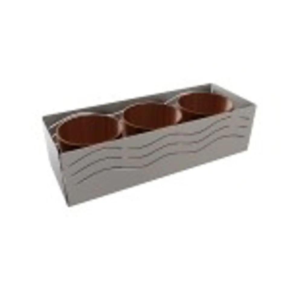 Nazwa produktu: Dekoracyjna metalowa osłona na trzy doniczki paskiKod: DON01Producent: ANDEXOpis:- Wymiary: 370 mm x 100 mm x 134 mm- Produkt wykonany jest z wysokiej jakości stali nierdzewnej- Produkt występuje w wersji polerowanej (błyszczącej),
