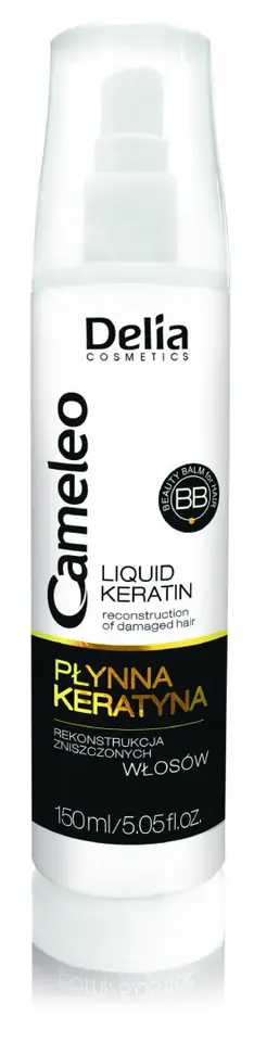 włosa i odbudowuje najbardziej uszkodzone miejsca, jednocześnie głęboko regenerując jego powierzchnię włosa. Płynna Keratyna "Cameleo BB" to: termoochrona, łatwe rozczesywanie, wygładzone włosy aż po same końce, większa podatność na skręcanie i układanie, wzrost sprężystości, elastyczności i miękkości, większy połysk.