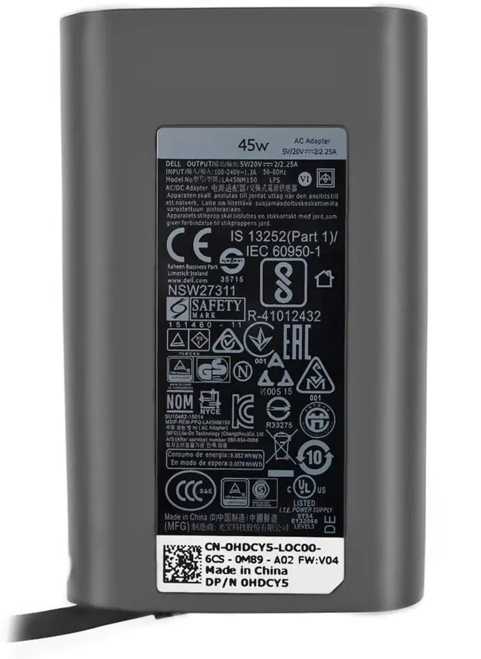 | Opis: | Dell AC Adapter, 45W, 19.5V, 3 Pin, Type C, C6 Power Cord (not incl.), PD2.1 |