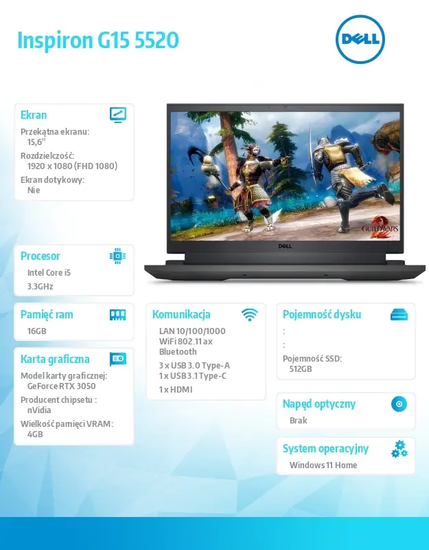 15-calowy notebook do gier z procesorem Intel Core dwunastej generacji i autonomiczną kartą graficzną NVIDIA GeForce.