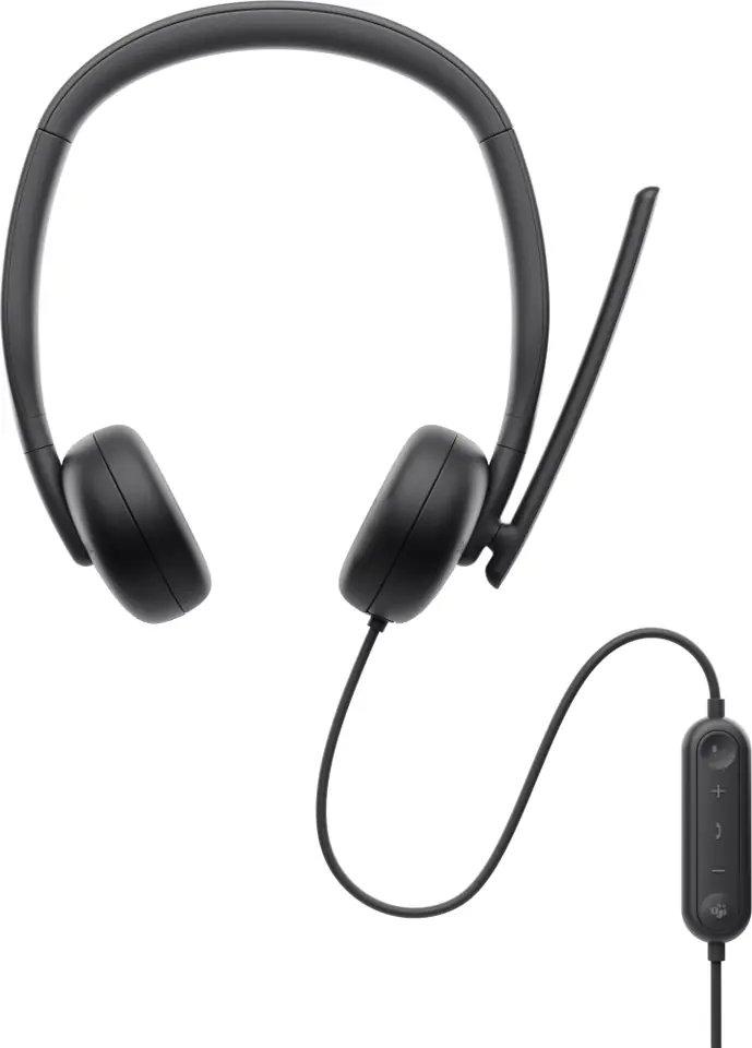 Przewodowy zestaw słuchawkowy Dell WH3024Niezakłócona komunikacja, produktywność i wygoda podczas całodziennego używania dzięki przewodowemu zestawowi słuchawkowemu wyposażonemu w mikrofon z redukcją szumów opartą na sztucznej inteligencji.Usłysz różnicęUsłysz różnicę między działaniem naszego przewodowego zestawu słuchawkowego Dell WH3024 z redukcją szumów opartą na sztucznej inteligencji a działaniem zestawów uchodzących za standard w branży. Nasz zestaw zapewnia wyraźną komunikację, niezawodnie wychwytując głos użytkownika i efektywnie eliminując szumy z tła.Mikrofon z redukcją szumów opartą na sztucznej inteligencjiDzięki opartemu na sztucznej inteligencji modelowi przetwarzania, redukcja szumów otoczenia działa inteligentniej, lepiej i dokładniej, odróżniając ludzkie głosy od dźwięków otoczenia.Sterowanie w zasięgu rękiZestaw słuchawkowy ma łatwe w użyciu elementy sterujące na przewodzie i obrotowy mikrofon na wysięgniku, który można nosić po lewej lub prawej stronie. Aby mikrofon wyciszyć, obróć go w górę. Aby wyłączyć wyciszenie i odbierać połączenia, obróć go w dół.Niezawodne połączeniaPodłącz i natychmiast rozpocznij korzystanie z tego zestawu słuchawkowego, który jest zgodny z popularnymi platformami UC i certyfikowany pod kątem programów Microsoft Teams (Open Office)i Zoom.Łatwa obsługaRegulowany, lekki pałąk i wykonane ze sztucznej skóry wymiennenauszniki z poduszkami z pianki z pamięcią kształtu umożliwiają całodzienną pracę i zapewniają komfort podczas połączeń konferencyjnych. Aby rozpocząć korzystanie z tego produktu, należy go podłączyć do portu USB-C lub USB-A.