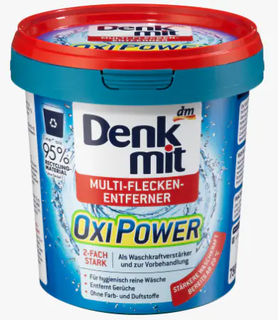 Denkmit Oxi Power Multi-Stain Remover wykorzystuje moc wysoce skutecznego aktywnego tlenu do usuwania nawet uporczywych plam, takich jak z owoców, warzyw, kawy, czerwonego wina, trawy, makijażu, oleju i sosu. Nadaje się do prania tekstyliów o trwałych kolorach i jest idealny do bardzo zabrudzonych tkanin, takich jak odzież niemowlęca i dziecięca, ściereczki kuchenne, odzież robocza, a także obrusy i pościel
