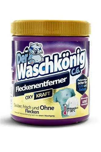 Z Der Waschkönig C.G. Twoje ubrania będą zawsze wyglądać jak nowe. Aktywna formuła wnika głęboko w tkaniny, eliminując plamy i przywracając świeżość oraz czystość Twojej garderobie. Nie ważne, czy walczysz z plamami po kawie, winie, trawie czy tłuszczu – ten odplamiacz poradzi sobie ze wszystkim!