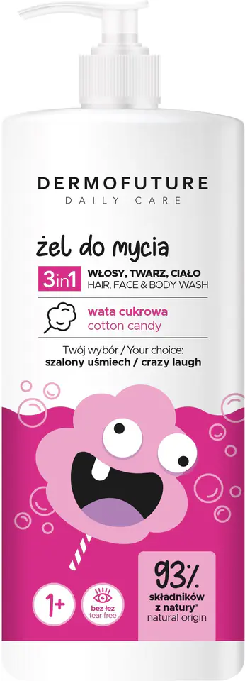 Szampon do włosów, żel do mycia ciała i twarzy oraz płyn do kąpieli 3w1 przeznaczony dla dzieci już od 1 roku życia o smakowitym zapachu waty cukrowej.