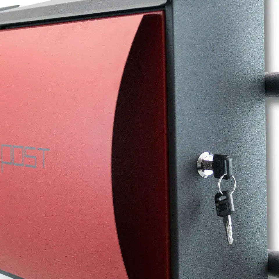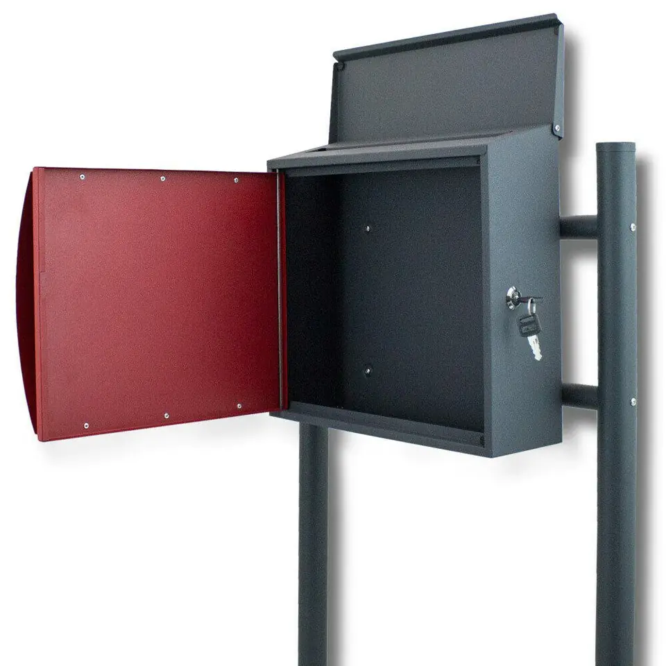 Skrzynka na listy jest zamykana i ze względu na dużą pojemność jest odpowiednia również dla firm. Jest łatwa w użyciu dzięki dużemu otworowi do wyjmowania. W skład zestawu wchodzą 2 stojaki, 2 poprzeczki, materiał mocujący i dwa klucze.