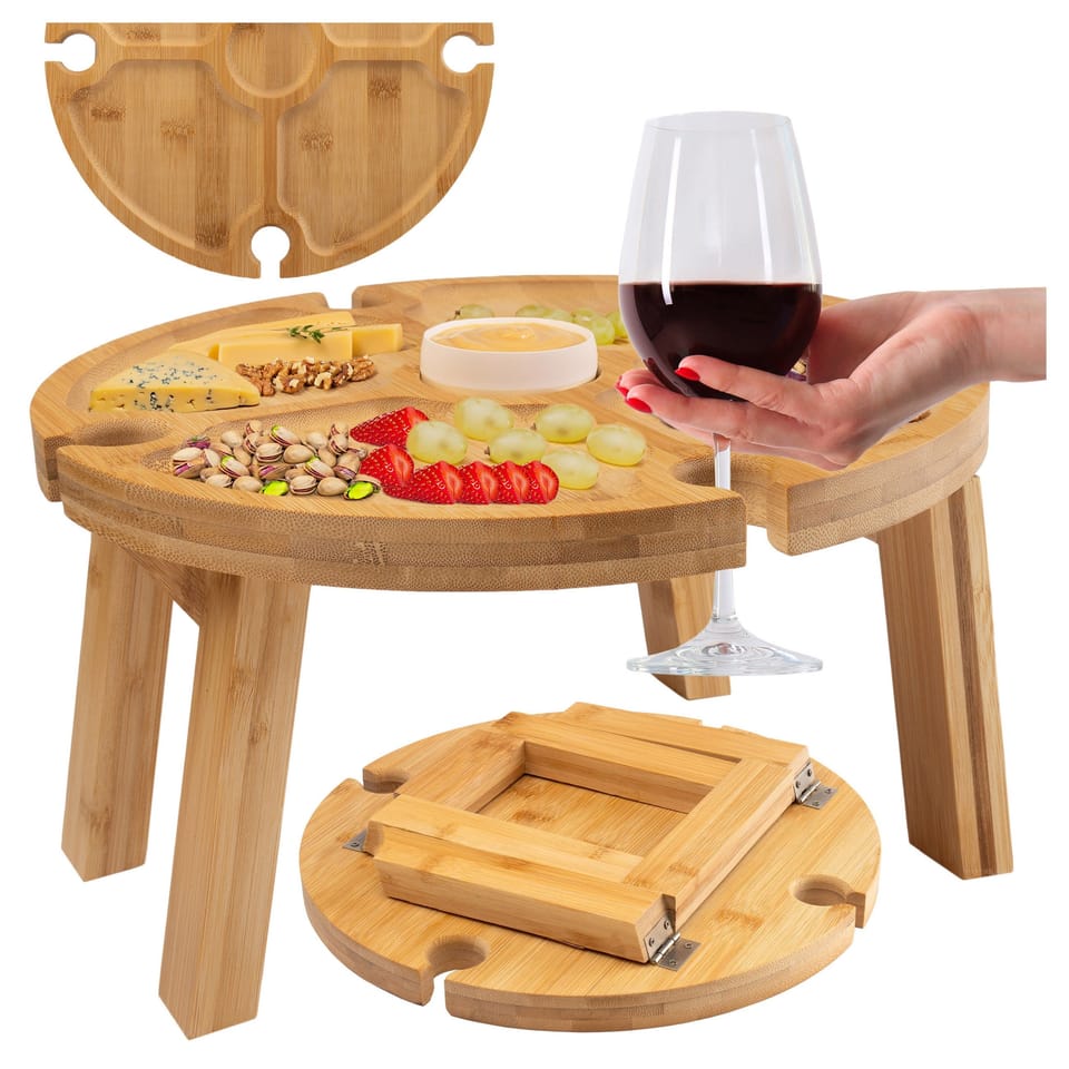Deska bambusowa do serów CEUTADeska do serów okrągła bambusowa na nóżkach - CeutaKolor: naturalny⭐️100% bambus⭐️Estetyczne wykonanie⭐️Na nóżkach⭐️Miejsce na kieliszki⭐️ ✨ Deska do serów Ceuta - Idealna na Każdą Okazję✨Deska do serów Ceuta to nie tylko praktyczny, ale również elegancki dodatek do każdej kuchni czy jadalni. Wykonana została z trwałego drewna bambusowego, ma składane nóżki, co ułatwia przechowywanie i prezentację na stole. Specjalny podział na cztery sekcje oraz centralne miejsce na pojemnik z sosem czynią ją idealnym wyborem do serwowania przekąsek na imprezach i spotkaniach towarzyskich. Dodatkowo, deska posiada wcięcia na cztery kieliszki do wina, co pozwala na eleganckie zestawienie serów i wina, uatrakcyjniając każde spotkanie.✅ Naturalne drewno bambusowe: Deska wykonana jest z drewna bambusowego, które jest nie tylko estetyczne, ale również trwałe i odporne na ścieranie.✅ Podział na sekcje: Cztery wygodne sekcje pozwalają na estetyczne rozłożenie różnych rodzajów serów i przekąsek. Centralne miejsce na pojemnik z sosem umożliwia serwowanie dipów czy oliwek, co jest świetnym uzupełnieniem serów.✅ Składane nóżki: Dzięki składanym nóżkom, deska jest łatwa w przechowywaniu i może być szybko przygotowana do użycia.✅ Wcięcia na kieliszki: Specjalne wcięcia na kieliszki do wina pozwalają na stworzenie eleganckiej prezentacji, idealnej na specjalne okazje.✅ Wszechstronne zastosowanie: Doskonała na domowe przyjęcia, romantyczne kolacje czy jako prezent dla miłośników serów i wina. ✔️ Specyfikacja:Materiał: 100% bambusSkładane nóżki: takPodział na sekcje: tak, 4 sekcje + miejsce na dipWcięcia na kieliszki: tak, 4Kolor: naturalnyWaga: 1,06 kg✔️ Wymiary:Wysokość po złożeniu: 4,5 cmWysokość z rozłożonymi nóżkami: 16 cmŚrednica: 29,5 cmGrubość na obrzeżu: 2 cm UWAGA | Przedstawione kolory należy traktować poglądowo - mogą odbiegać od rzeczywistych ze względu na różne ustawienia monitorów oraz proces obróbki zdjęć • Rzeczywiste wymiary mogą się nieznacznie różnić od podanych w opisie. Tolerancja błędów może wynosić +/- 2 cm