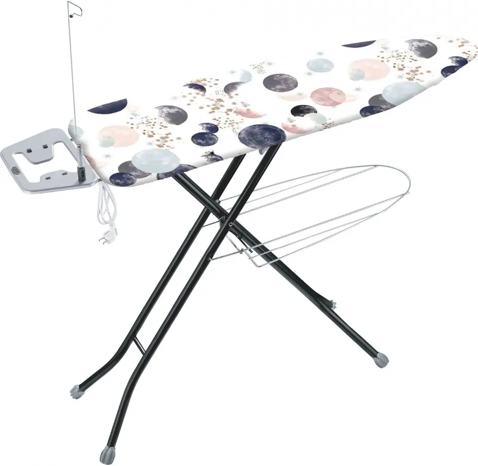 Deska do prasowania posiada regulację wysokości, podstawkę na żelazko z silikonowymi elementami zapobiegającymi uszkodzeniu powierzchni żelazka.
