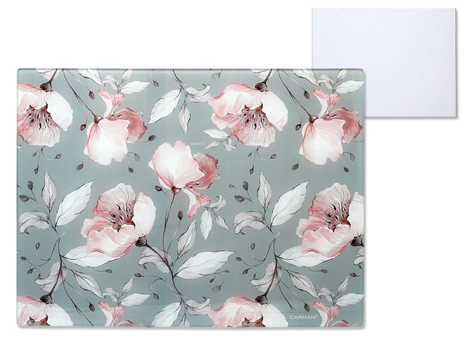 Gładka, błyszcząca tafla deski szklanej to doskonałe tło dla pięknych, kwiatowych dekoracji - bo kto powiedział, że produkty praktyczne, jak deska szklana nie mogę być piękne?