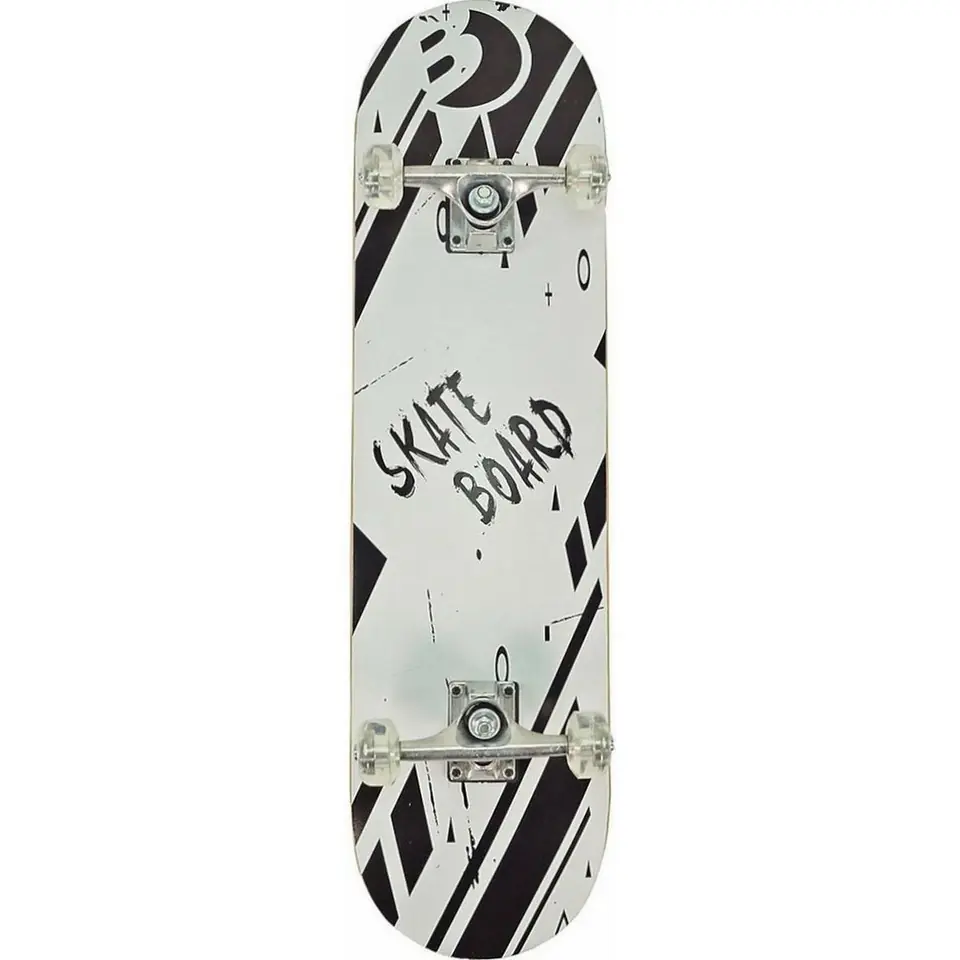 DESKOROLKA DREWNIANA KID BLACK & WHITE BEST SPORTING jest idealnym rozwiązaniem dla tych, którzy zaczynają przygodę ze skateboardingiem. Solidny drewniany deck z 7 warstw klonu gwarantuje wytrzymałość i elastyczność, a aluminiowe trucki zwiększają stabilność i łatwość skręcania. Łożyska ABEC 3 to idealny standard dla początkujących — zapewniają płynne toczenie przy zachowaniu bezpieczeństwa i pełnej kontroli.