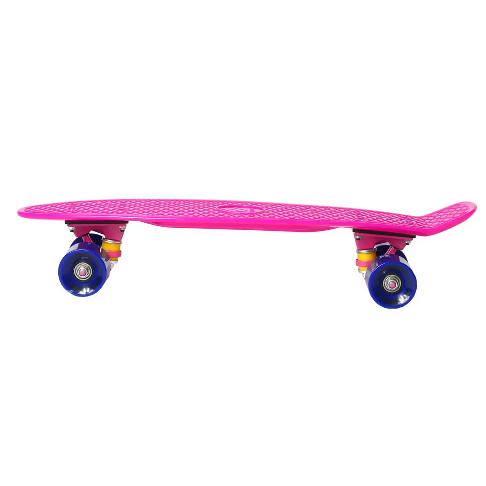 Jazda na deskorolce to sport indywidualny, który daje nie tylko frajdę, ale też poprawia sprawność fizyczną, pobudzając wszystkie mięśnie. Pozwala również, ćwiczyć wytrwałość i cierpliwość. DESKOROLKA PLASTIKOWA 22 CALE ENERO FIOLETOWA idealnie posłuży do rozpoczęcia przygody z tego rodzaju sportem oraz do nauki podstawowych trików. Potocznie tego rodzaju deskorolki nazywane są fiszkami. Ich nazwa pochodzi od angielskiego słowa „fish” oznaczającego rybę, z uwagi na ich charakterystyczny kształt.