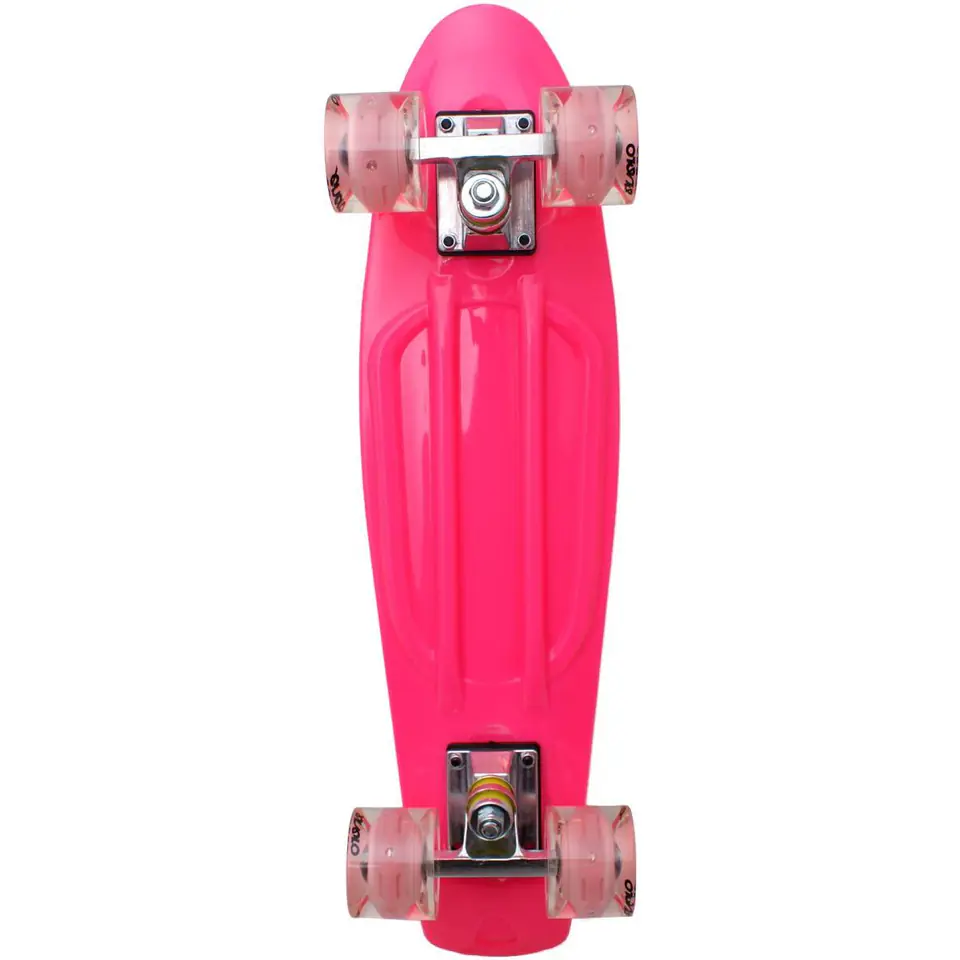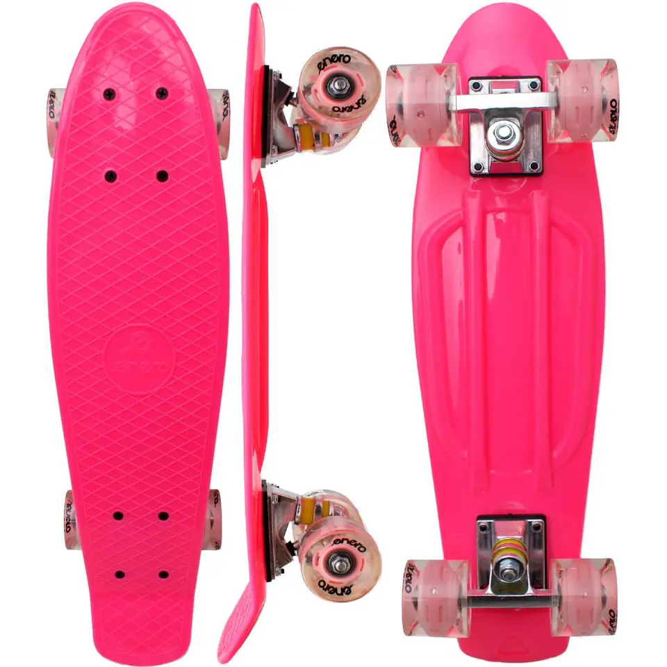 Jazda na deskorolce to sport indywidualny, który daje nie tylko frajdę, ale też poprawia sprawność fizyczną, pobudzając wszystkie mięśnie. Pozwala również, ćwiczyć wytrwałość i cierpliwość. DESKOROLKA PLASTIKOWA 22 CALE ENERO RÓŻOWA LED idealnie posłuży do rozpoczęcia przygody z tym rodzajem sportu oraz do nauki podstawowych trików. Potocznie tego rodzaju deskorolki nazywane są fiszkami. Ich nazwa pochodzi od angielskiego słowa „fish” oznaczającego rybę, z uwagi na ich charakterystyczny kształt i znane są na całym świecie